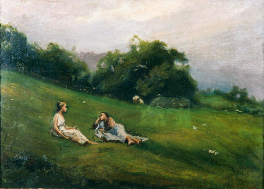 135. Un idillio, 1906. Olio su tela; 53,4 x 73,5 cm (Schedatura 1990 n. 39/OA) |